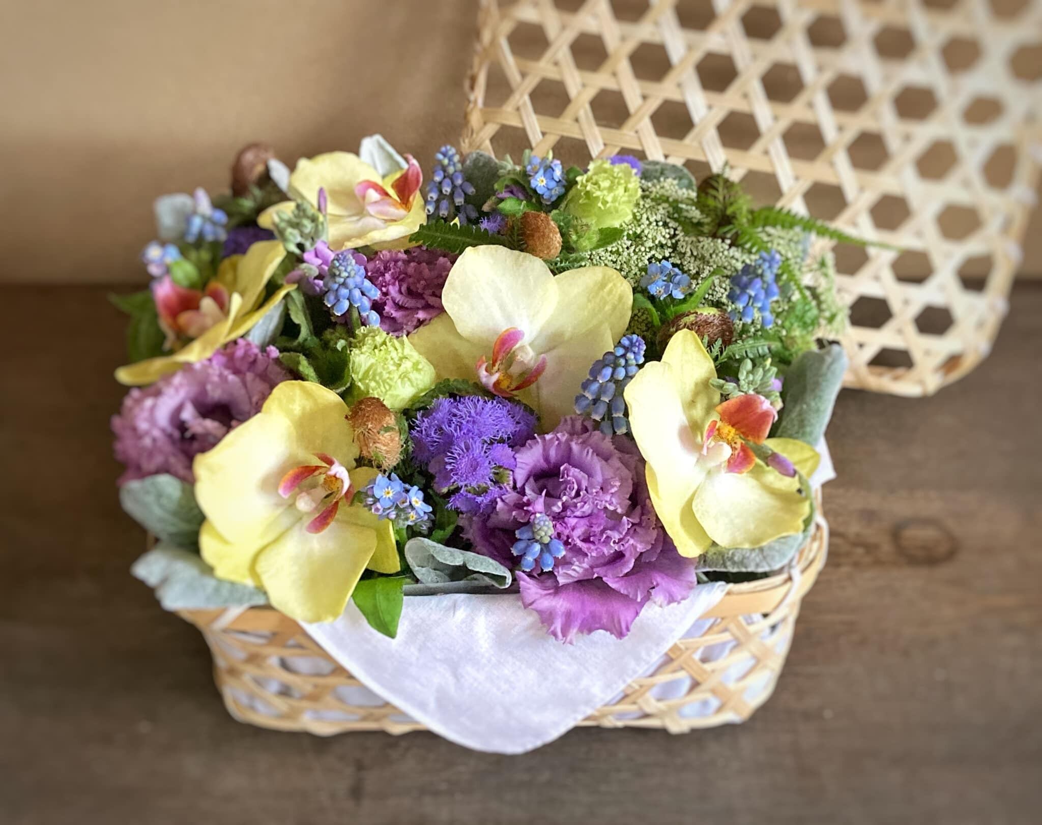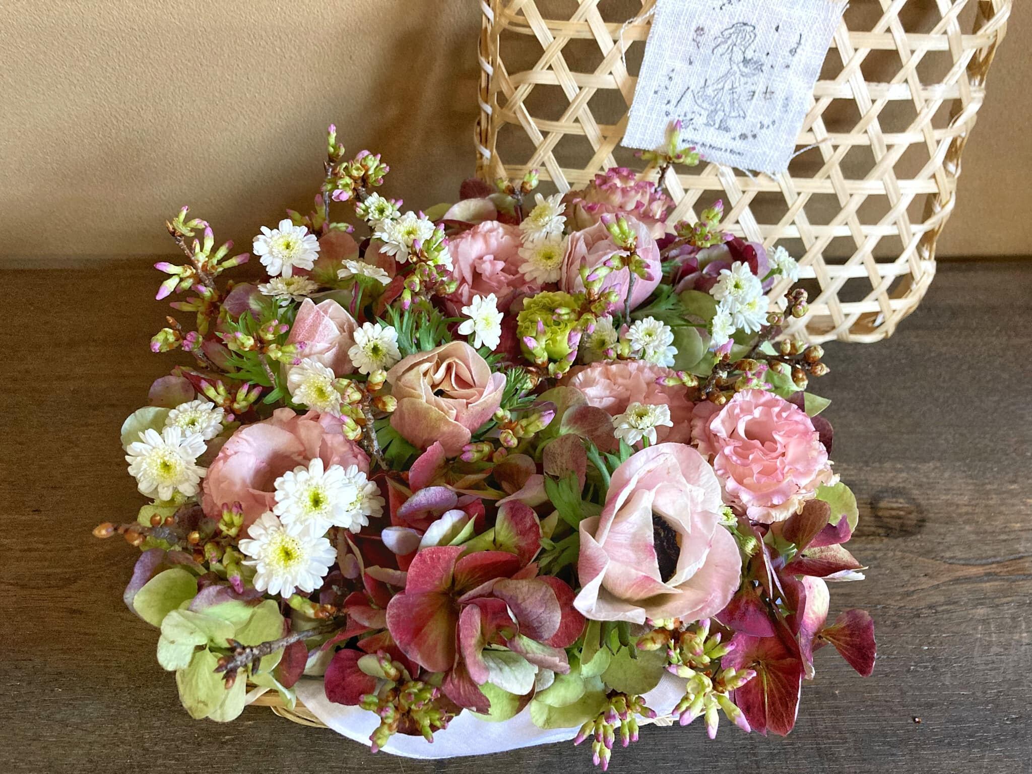 籠とふきんはお花が終わった後に