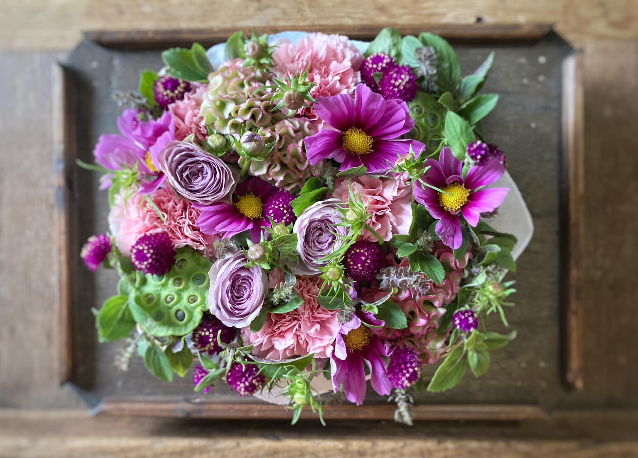 自然素材の”花”の贈りものだからこそ、最後は土に還るものであれれば・・・。