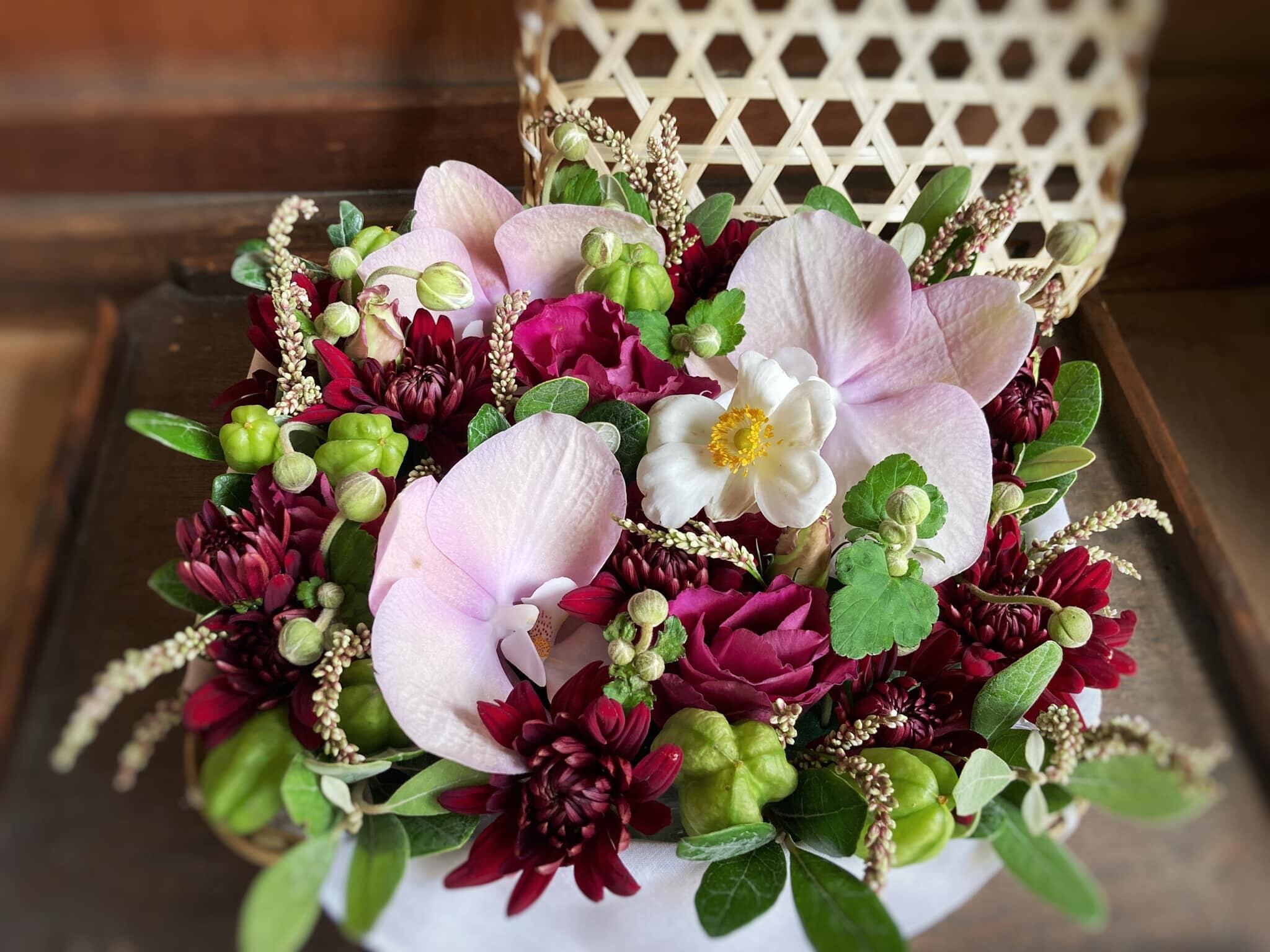 中のお花は和洋折衷に季節に合わせた内容で